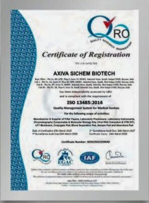 Axiva Sichem Biotech is the leading manufacturer of Filtration solutions, Plasticware, and molecular Biology Kits, with experience of over 30 years, which gives us an edge at the operational level and loads us with expertise for being accepted by premier cement industries, Pharmaceutical Industries, prestigious Research Institutes, and Pollution Control Boards all over India.